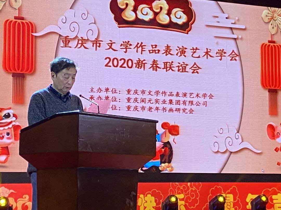 1月19日下午,重慶市老干部活動(dòng)中心洋溢著喜慶祥和的節(jié)日氣氛,重慶市文學(xué)作品表演藝術(shù)學(xué)會(huì)2020新春聯(lián)誼會(huì)在這里傾情上演。重慶市文學(xué)作品表演藝術(shù)學(xué)會(huì)的名譽(yù)會(huì)長(zhǎng)、副會(huì)長(zhǎng)、常務(wù)理事、會(huì)員以及作家、藝術(shù)家、書畫家等300余人參加了新春聯(lián)誼會(huì)。重慶市作家協(xié)會(huì)榮譽(yù)主席黃濟(jì)人發(fā)表致辭,他對(duì)學(xué)會(huì)自成立以來取得的各項(xiàng)成就表示祝賀并獻(xiàn)上新年祝福。重慶市文學(xué)作品表演藝術(shù)學(xué)會(huì)會(huì)長(zhǎng)郝鵬壽總結(jié)了學(xué)會(huì)2019年的工作。