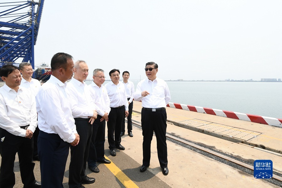 隨后,習近平來到洋浦國際集裝箱碼頭小鏟灘港區,了解港口建設發展情況,同現場作業人員、掛職干部代表等親切交流。習近平強調,振興港口、發展運輸業,要把握好定位,增強適配性,堅持綠色發展、生態優先,推動港口發展同洋浦經濟開發區、自由貿易港建設相得益彰、互促共進,更好服務建設西部陸海新通道、共建“一帶一路”。他指出,黨中央選派干部來自由貿易港掛職,既體現了黨中央對自由貿易港建設的關心和支持,也是對干部的培養鍛煉,要發揮掛職干部的積極作用,讓他們在基層一線增長才干。