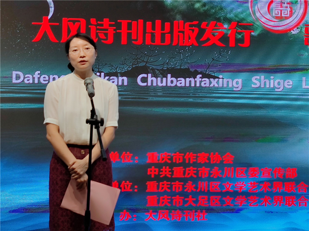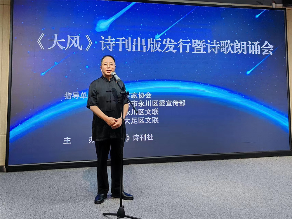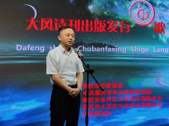 “所有的風歸結到一起,叫大風/所有的翅膀裝訂成一冊,叫大鳥……”7月15日,《大風》詩刊2021秋、冬卷出版發行暨詩歌朗誦會在永川世代書香書城舉行。此次活動由重慶市作家協會、中共重慶市永川區委宣傳部、重慶市永川區文聯、重慶市大足區文聯指導,《大風》詩刊社主辦。重慶市作協黨組書記、專職副主席何浩,永川區委常委、區委宣傳部部長張小梅,重慶文學院副院長張兵以及川渝兩地詩人、永川區作協、大足區作協、九龍坡區作協、沙坪壩區作協、永川融媒體中心等單位代表參加了活動。
