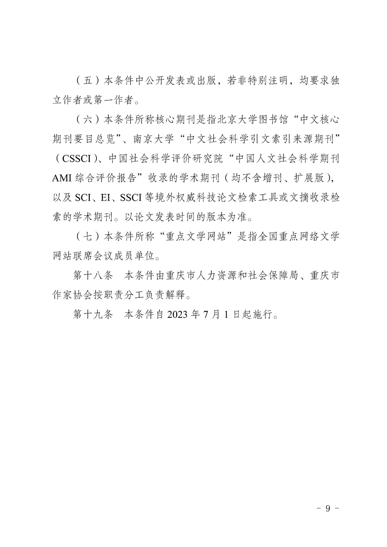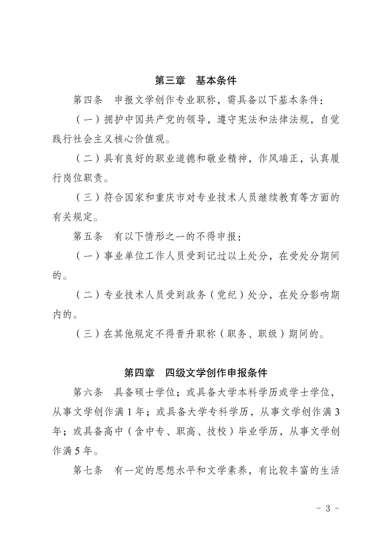 關(guān)于印發(fā)《重慶市文學(xué)創(chuàng)作專業(yè)職稱申報條件》的通知