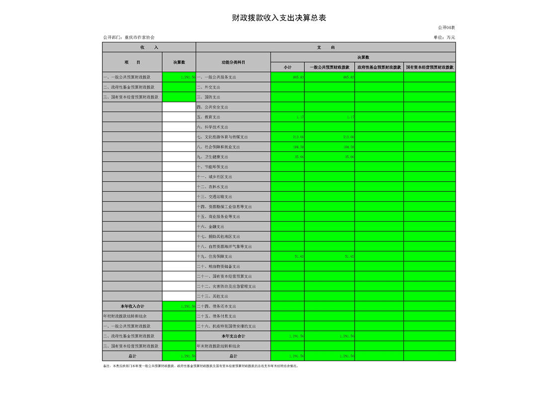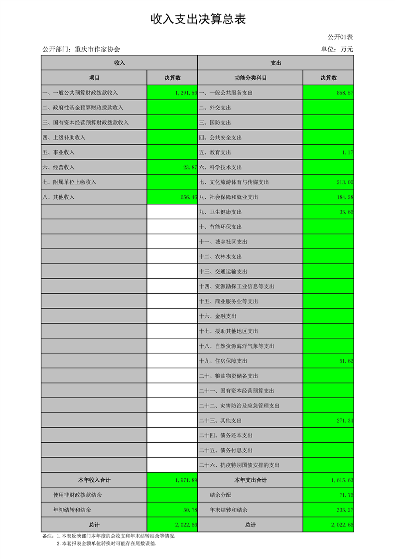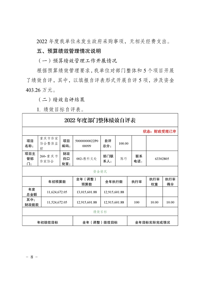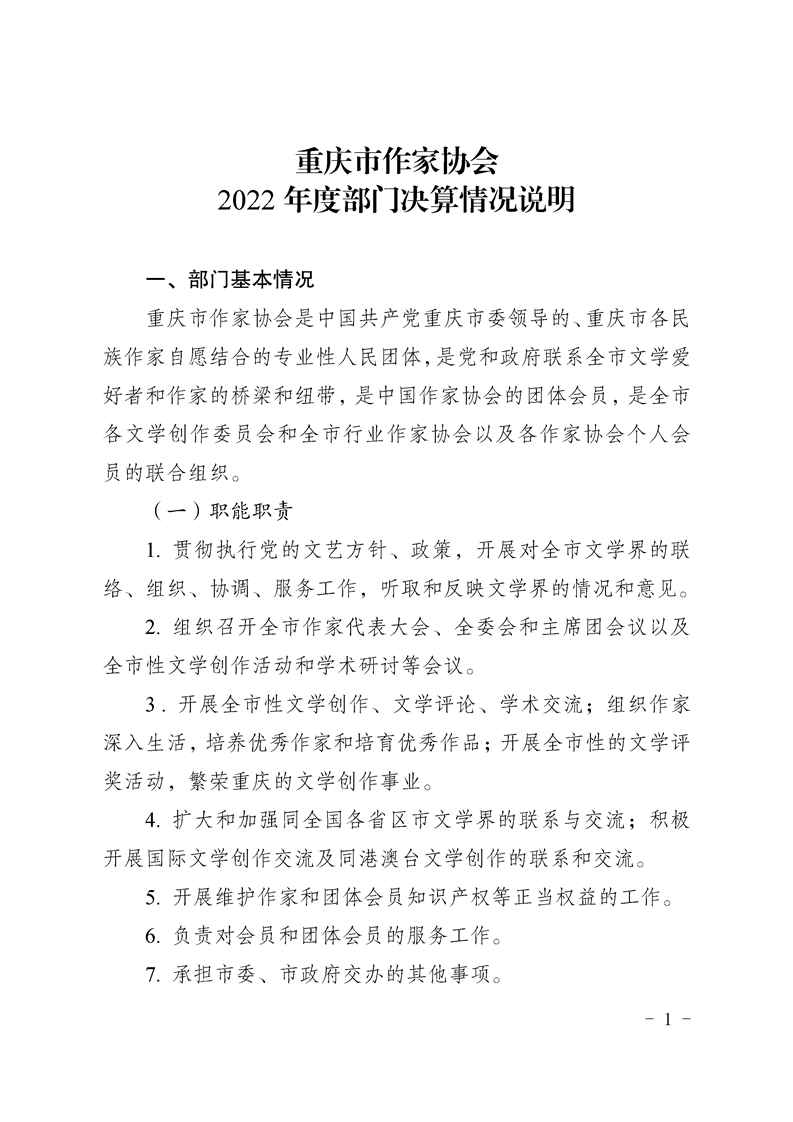 重慶市作家協會2022年度部門決算情況說明