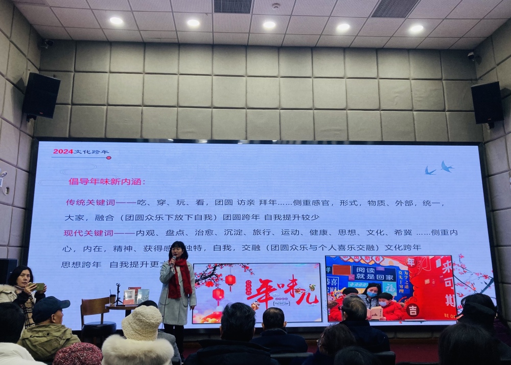 1月28日下午,2024文藝跨年喜迎春節活動在曾家巖書院舉行,渝中區作協主席強雯與到場的作家、區作家協會會員、書友、寫作愛好者相互交流,并作了有關過年習俗的文化講座。